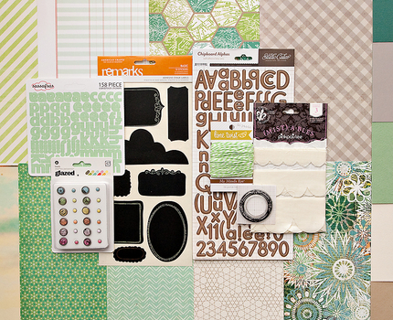 Some very cool papers from Simple Stories called Year-o-graphy, some assorted bakers twine, some bling, some pretty glitter cardstock and black foam thicker letters. I am sure I will add more to it too. I love to give away scrappy prizes!